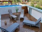 In Rons Beachhouse kunt u genieten van de rust in de prachtige grote tuin waarbij u overdag lekker op de ligbedden kunt zonnen. Wilt u liever buiten in de schaduw zitten dan kan dat o.a. op het ruime balkon aan de achterzijde.
