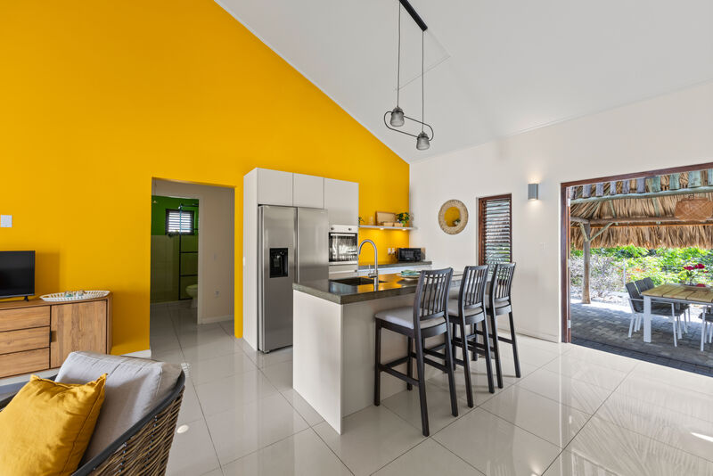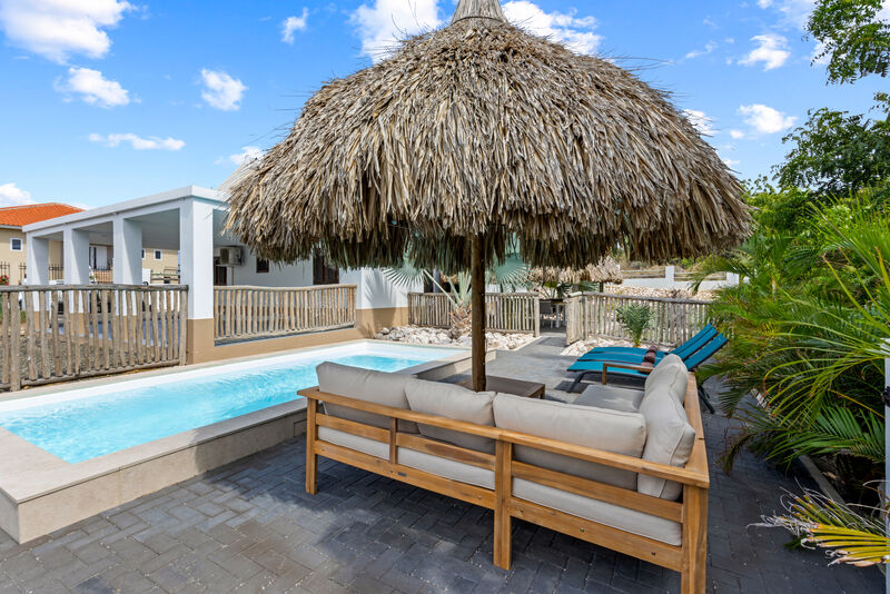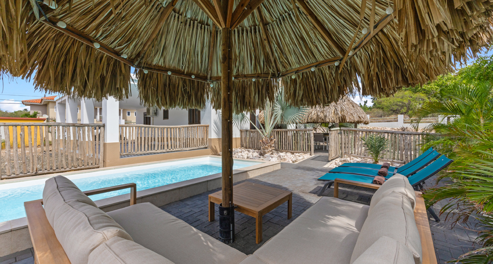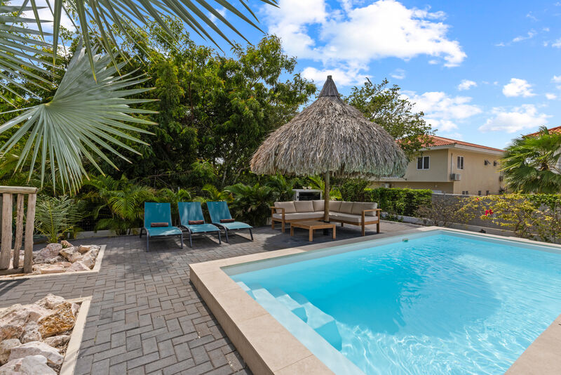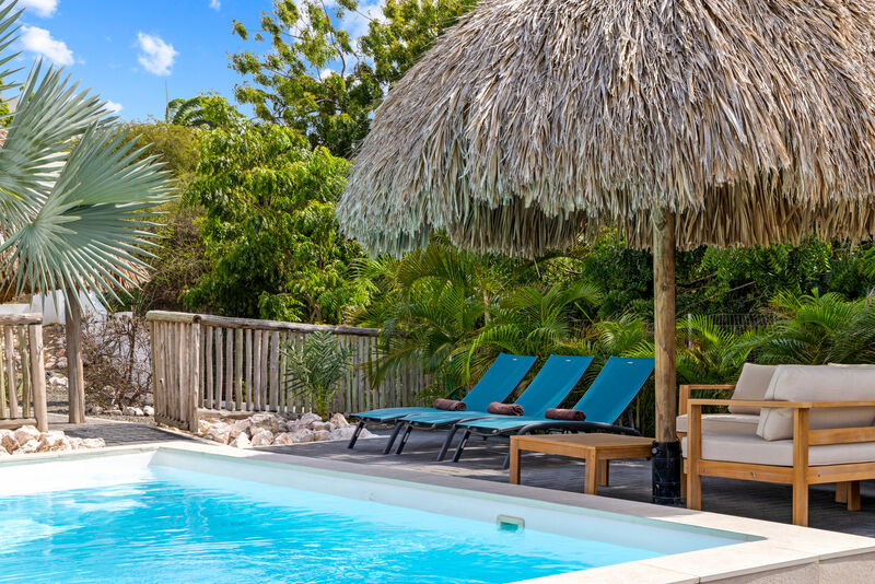 Begin je dag in de palapa, waar je kunt genieten van een ontbijtje met uitzicht op de weelderige tuin en het privézwembad. Op warme avonden is de BBQ ideaal om samen te koken en te genieten van een gezellige maaltijd onder de sterren. Bij het zwembad staan comfortabele loungestoelen en is een gezellig zithoekje, perfect om te relaxen, een goed boek te lezen of gewoon de tropische sfeer in je op te nemen. De kleurrijke tropische planten en palmbomen geven de tuin een echt Caribisch gevoel.
