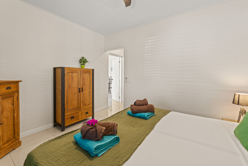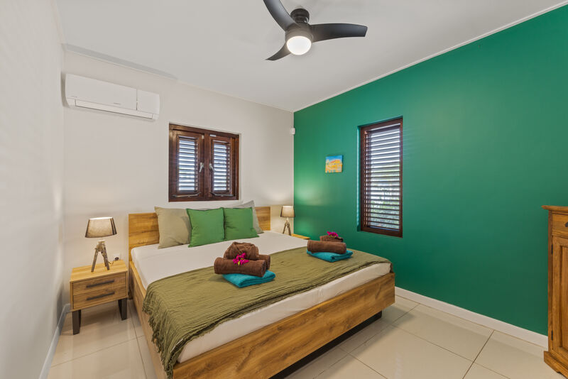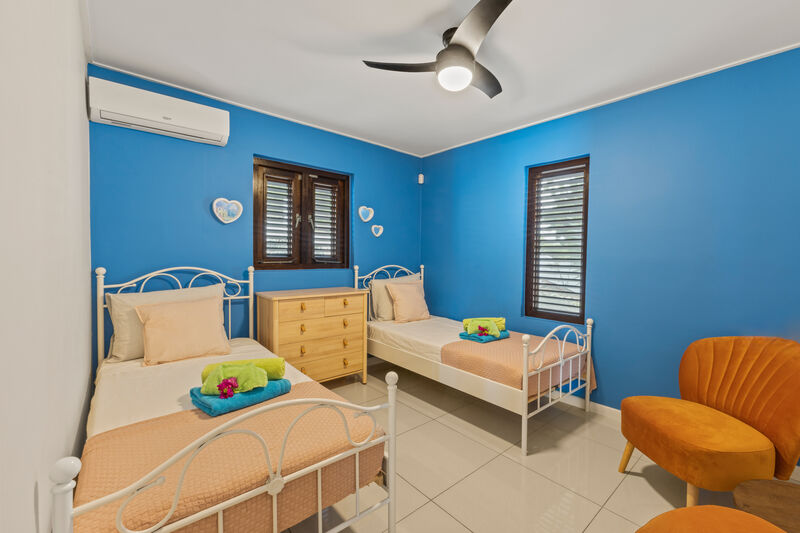 Binnen vind je koele slaapkamers met airconditioning en ventilatoren, zodat iedereen heerlijk kan slapen. Voor extra comfort zijn alle ramen voorzien van horren, waardoor je kunt genieten van de zachte passaatwind zonder ongewenste bezoekers. De villa beschikt bovendien over een volledig ingerichte keuken, snelle WiFi en alles wat je nodig hebt om je meteen thuis te voelen.